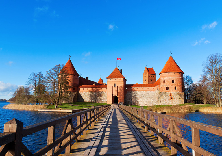 Am frühen Nachmittag fahren wir nach Trakai. Die malerisch auf einer Insel gelegene Wasserburg entführt uns in die Zeit des Großfürstentums Litauen. Beim gemeinsamen Mittagessen kosten wir Spezialitäten der Karäer – eine kleine, heute noch aktive Glaubensgemeinschaft mit eigenem kulinarischem Erbe.  Anschließend Fahrt nach Klaipėda. (F, A)