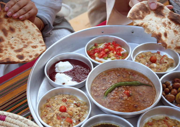 Heute reisen Sie entlang einer alten Pilgerroute nach Medina. Erwarten Sie nicht nur Sanddünen, sondern auch vulkanisches Gelände mit schwarzem Lavagestein und beeindruckenden Bergpanoramen, die reich an historischer Bedeutung sind. Sie besichtigen die Überreste der Lehmsiedlung, die in einem steilen Wadi liegt, mit mehreren Festungen, die hoch über tausenden grünen Palmen thronen. Das Gebiet wurde kürzlich nach Renovierungen wiedereröffnet.