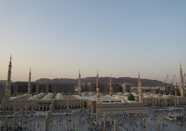 Medina, zusammen mit Mekka, ist die heiligste Stadt im Islam und zentriert um die Al-Masjid an-Nabawi, die Prophetenmoschee. Diese riesige Moschee mit zehn Minaretten bietet Platz für bis zu 1 Million Menschen. Die Stadt ist von tausenden Pilgern bevölkert, was eine einzigartige Atmosphäre schafft, die schwer zu beschreiben ist. Nicht-Muslime sind eingeladen, die Außenansicht der Moschee vom Rand des Platzes zu genießen. Die berühmten Sonnensegel der Moschee sind beeindruckende technische Meisterwerke, die von der Firma SL Rasch GmbH aus Baden-Württemberg entworfen wurden. Diese reagieren automatisch auf Wetterbedingungen wie Sonneneinstrahlung und Regen und öffnen oder schließen sich entsprechend.